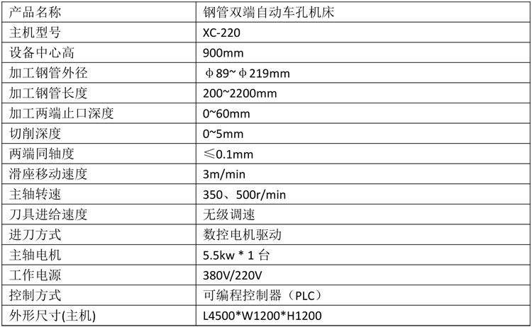 鋼管雙端自動車孔機床產品特性及參數(shù)
